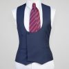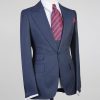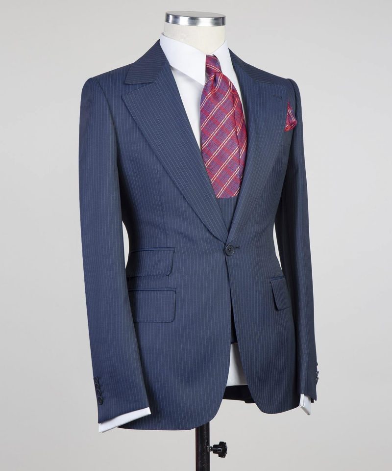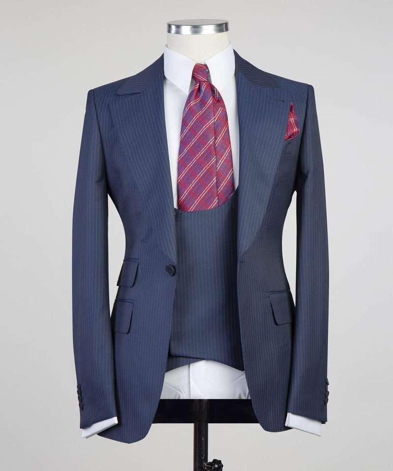 Coupe en demie – mesure Pantalon coupe slim, sans pince & braquette zip, avec passants ceinture Tissu bleu rayure blanche Laine super 200 s