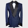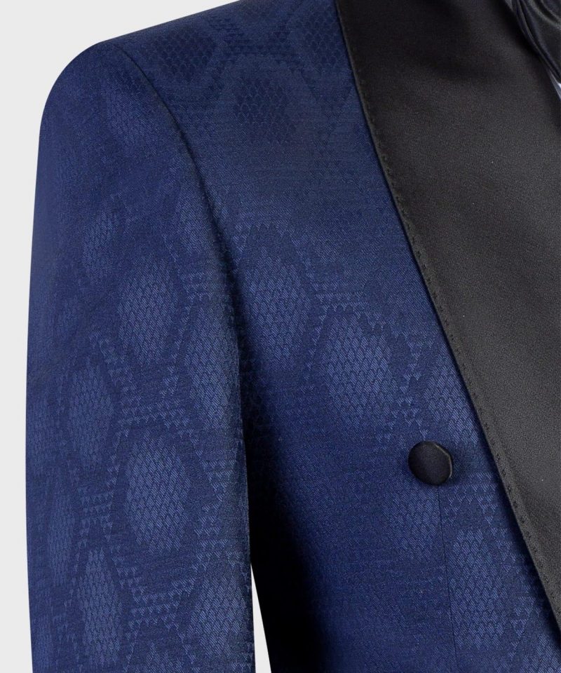 Modèle « Pijama bleu motif »  Costume 2 pièces croise 2 boutons, poche droite , ceinture satin noir.