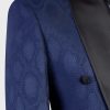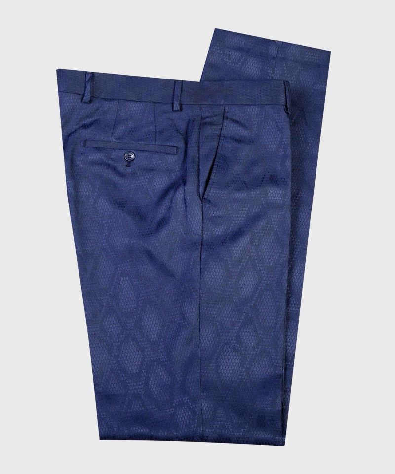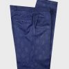 Coupe en demie – mesure  Pantalon coupe slim, sans pince & braquette zip, avec passants ceinture  Tissu bleu motif  Laine super 200 s.