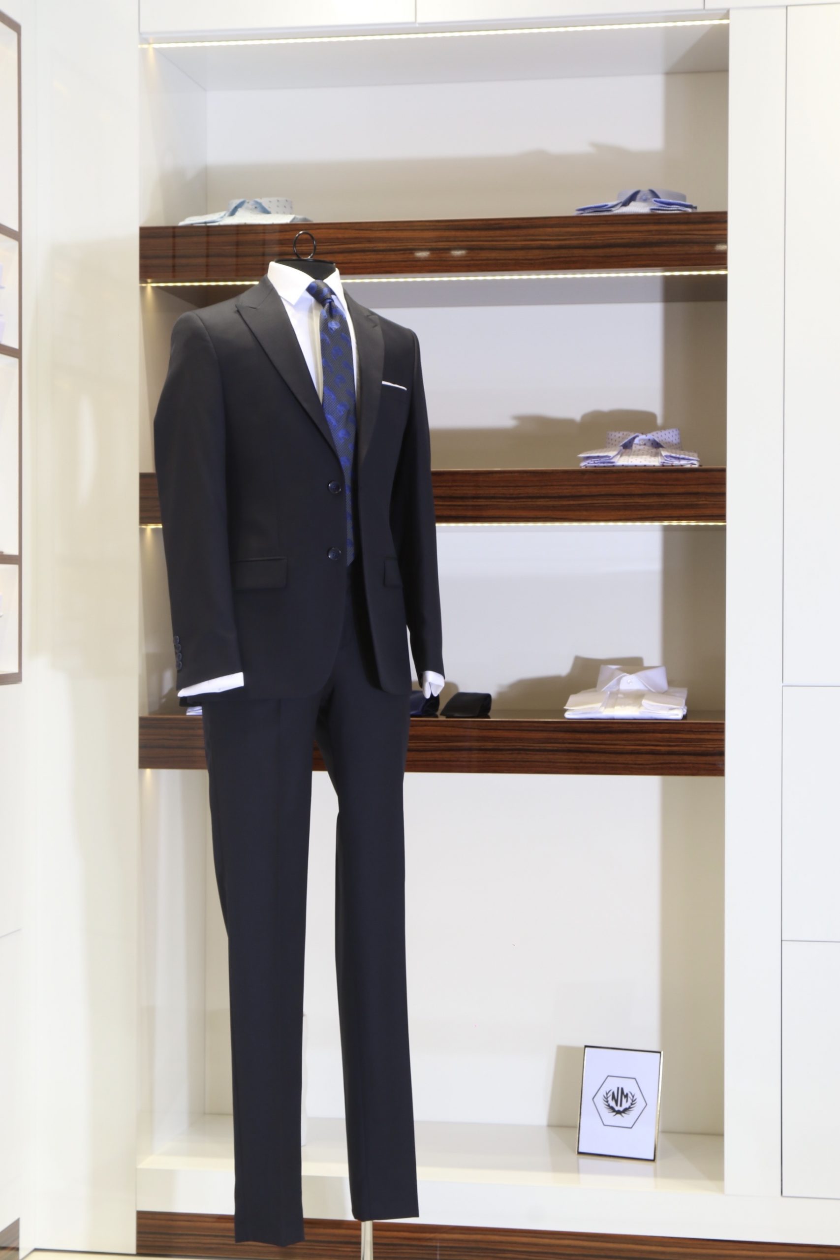 Coupe en demie – mesure  Pantalon coupe slim, sans pince & braquette zip, avec passants ceinture  Tissu Gris bleu nuit   Laine super 200 s