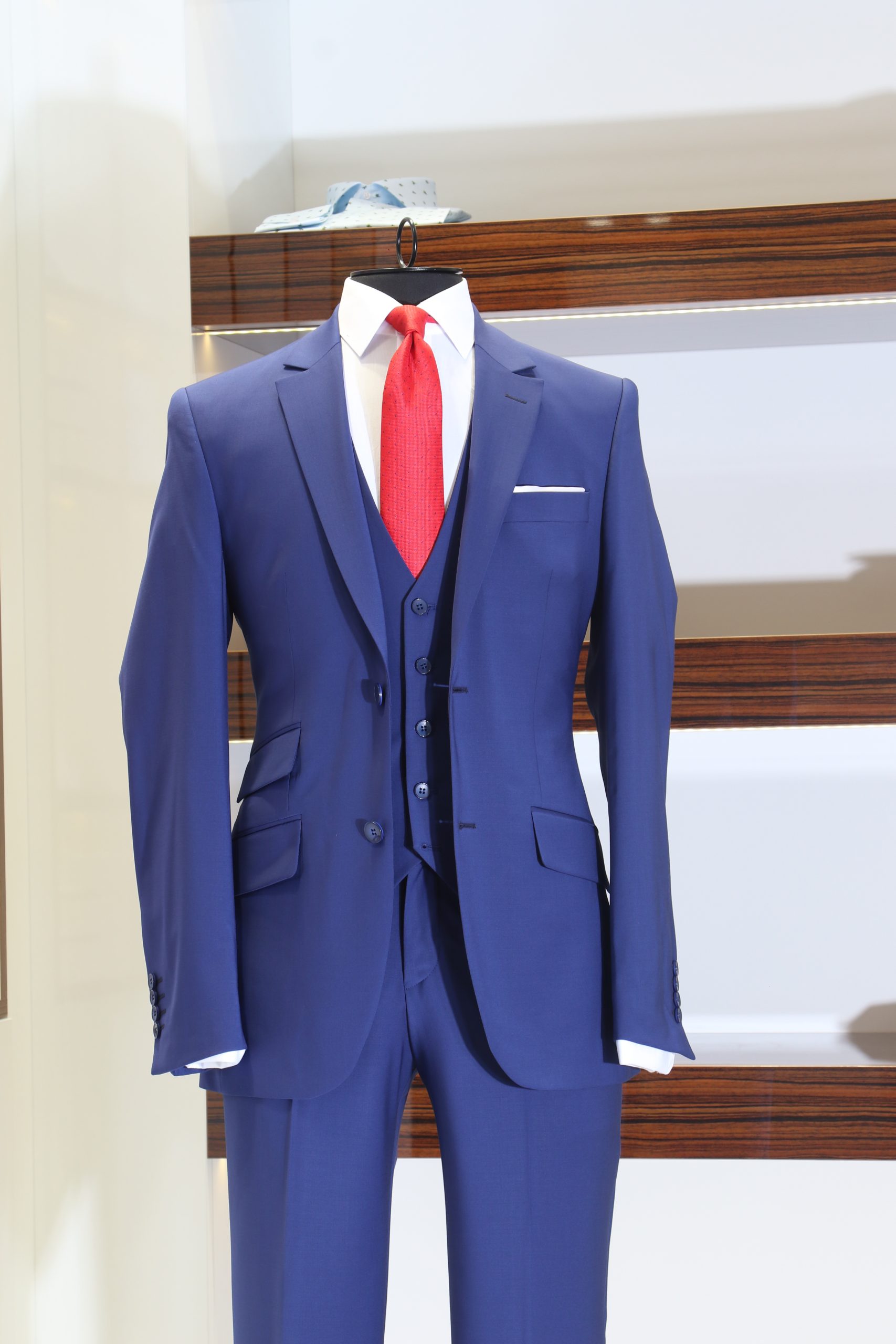 Modèle « Royal »  Costume 3 pièces 2 boutons poche biais poche ticket biais.